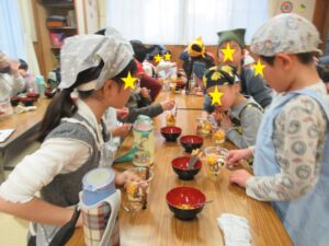 完成したパフェを班のおともだちと